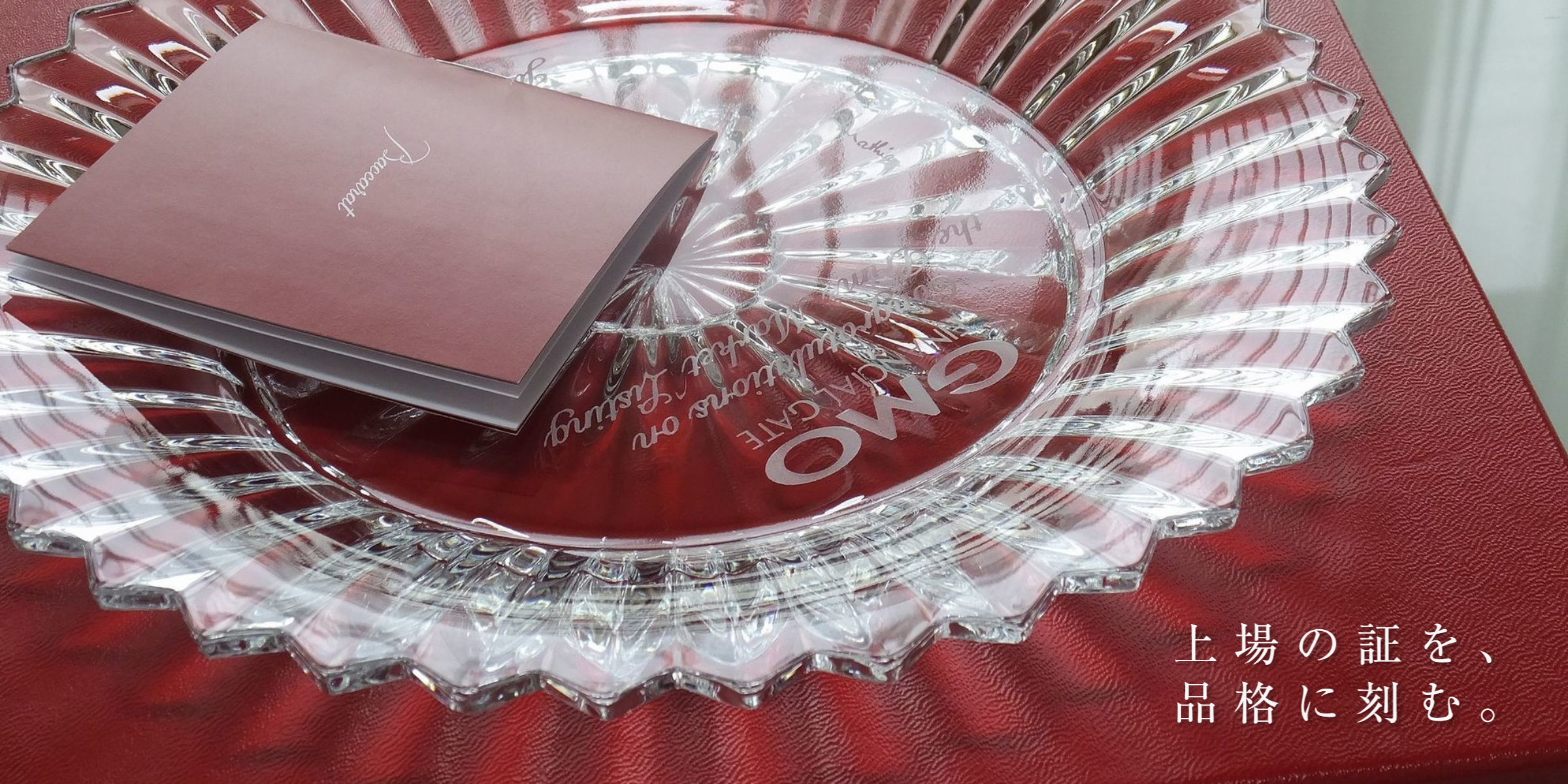私たちが扱うバカラは、250年以上の歴史に裏打ちされた品格と芸術性を象徴。そのバカラへ、企業のアイデンティティと想いを刻むことで、単なる記録ではなく、企業の繁栄と精神を未来につなぐ、かたちある象徴が生まれます。