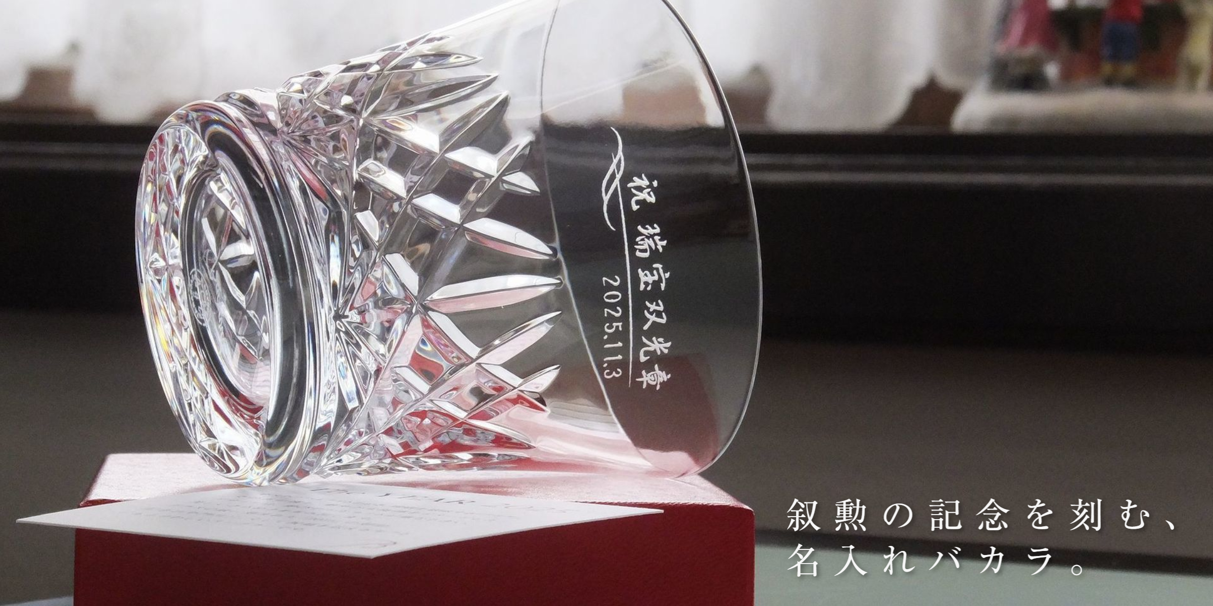 “バカラで販売しているすべての商品に名入れ彫刻いたします“