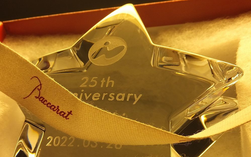 バカラの花瓶には光を受けて美しく輝く透明感があり、その美しさはまさに企業が歩んできた道のりの輝かしい成果を象徴しています。