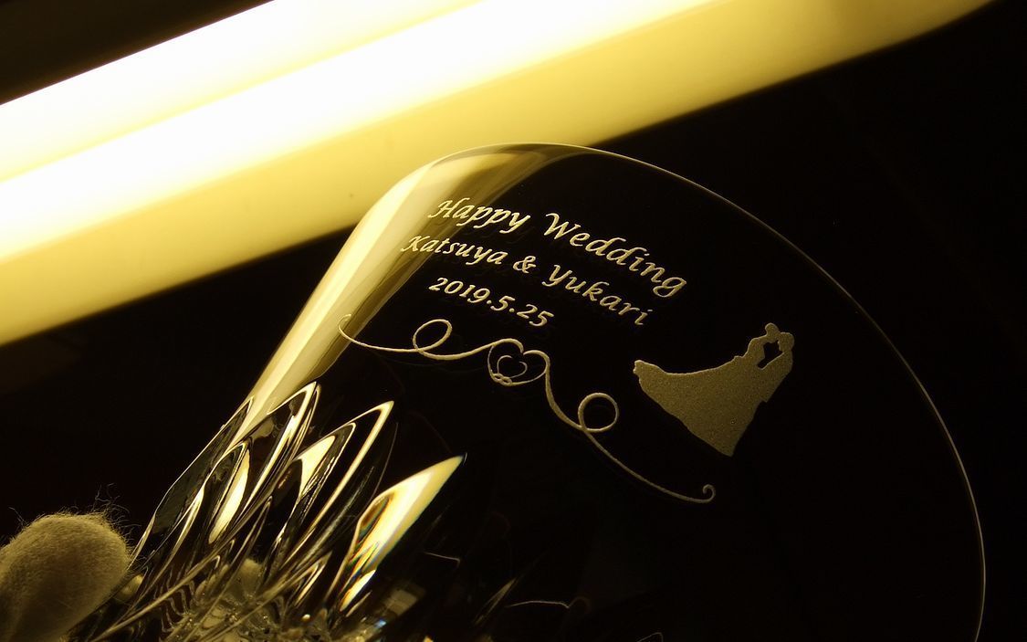 彫刻によって、名前や記念日、メッセージを刻むことで、世界にひとつだけのプレゼントに仕上がります。新婚祝いはもちろん、結婚1周年(紙婚式)から10周年(錫婚式)など、記念日のギフトとしても最適です。