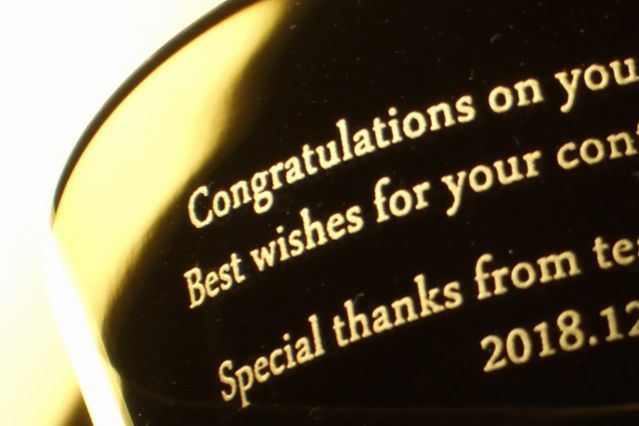 『お祝いタイトル』『名前』『日付』が彫刻された物は