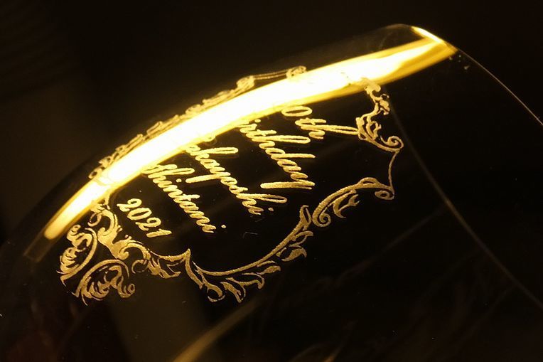 その優雅なフォルムと、芳醇なワインを引き立てる設計美は、日常を上質に彩ります。当店では、この特別なグラスに「お名前」や「メッセージ」を彫刻し、唯一無二の贈り物としてご提供しています。
