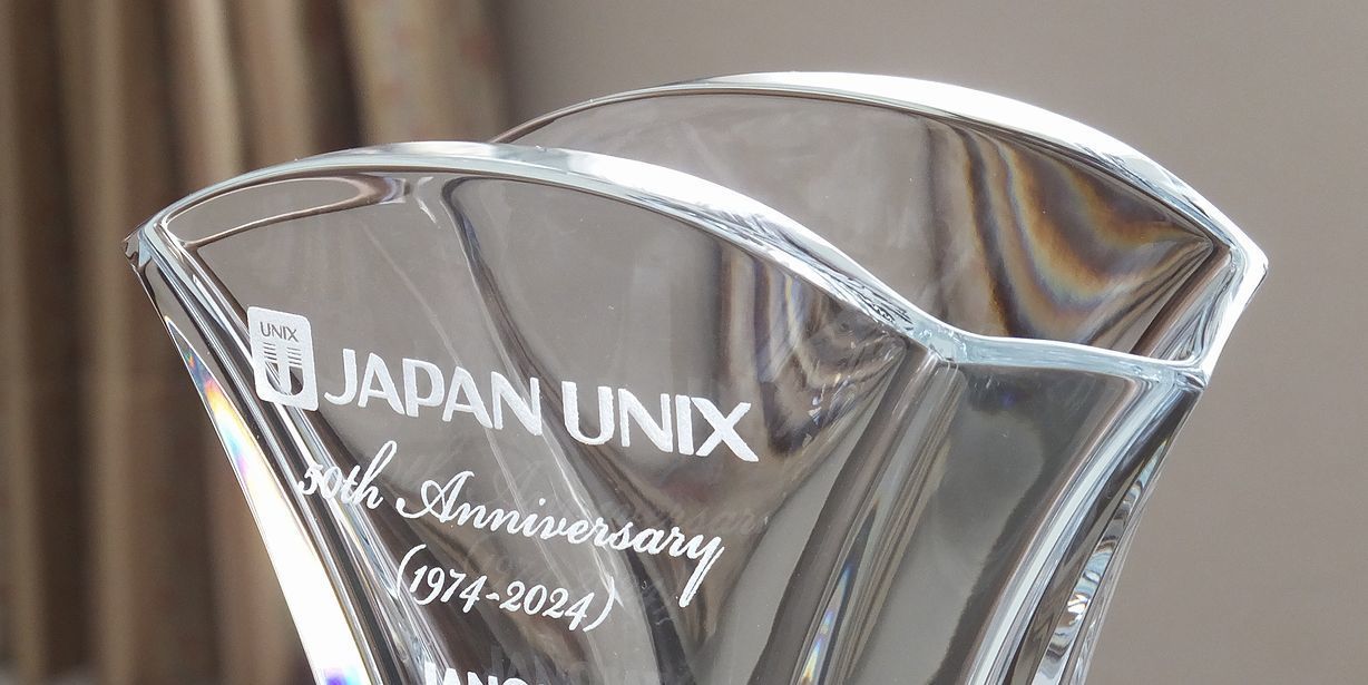 周年数と年号のみ。余白の美しさが際立ち、クリスタルの透明感が最も活きる形です。